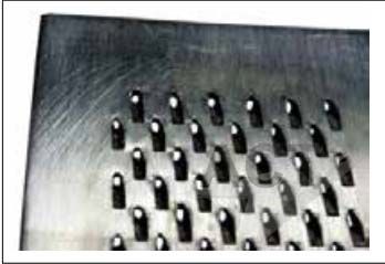 導(dǎo)向葉片和渦輪葉片通常采用沖擊鉆孔,雖然也有一些廠商更喜歡環(huán)形切割成孔方法。鉆孔過程中要防止背板受損。導(dǎo)向葉片和渦輪葉片通常充滿了各種各樣的材料,以防止激光損壞背板。在鉆孔過程完成后,填充材料可以取出。各發(fā)動機制造商所采用的填充材料不盡相同。